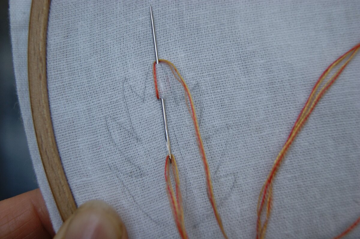 Здравствуйте, дорогие читатели! В этой статье хочу познакомить вас со способами вышивки листьев различных растений, которыми пользуюсь сама. Мне некоторые из способов показались очень интересными. С самого начала моего вышивального хобби меня интересовал вопрос как красиво вышить листья. С цветами на тот момент мне было все понятно, им я уделяла больше внимания и не вдавалась в подробности, как вышивать листья, стебли. Но теперь я этому научилась и могу поделиться с вами несколькими вариантами вышивки листьев растений. Если останутся вопросы к статье вы всегда их можете задать в комментариях. Итак, приступим! 1. Сначала покажу как вышить листок цветка маргариты. В основе вышивки этого листочка лежит стежок "петля с прикрепом", но когда игла выводится на лицевую сторону, на иглу навиваем нить по часовой стрелке. Затем пропускаем иглу через навив и закрепляем как "прикреп" над петлей. Вышивка листьев в данной технике напоминает стиль "рококо", те же витки на игле. В результате получае