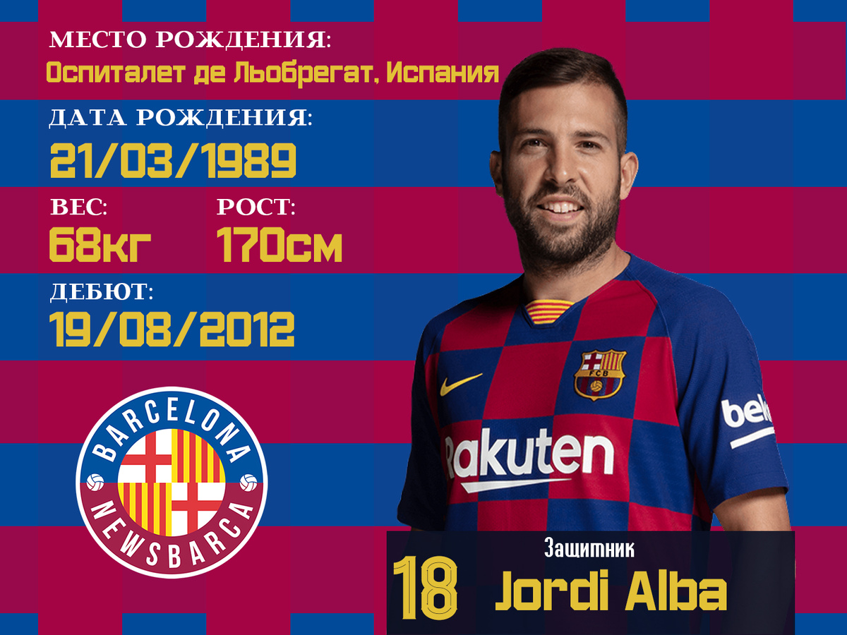 newsbarca.ru Жорди Альба очень быстр, он признан одним из самых атакующих левых защитников в современном футболе Жорди Альба подписал контракт с ФК Барселона 5 июля 2012 года после достижения соглашения с Валенсией для его перехода. Каталонскому крайнему защитнику было 23, когда он вернулся в Клуб и был первым подписанием сезона 2012/13. Жорди Альба Рамос родился в Оспиталет де Льобрегат 21 марта 1989 года. В 10 лет пришел в академию Барсы, он прошел через различные академии команды, наряду с такими игроками, как Боян Кркич, Фран Мерида и Дос Сантос. В конце сезона 2007 года, он покинул Барсу и перешел в Корнелью, где провел один сезон, до перехода в Валенсию, которая заплатила 6000 евро за его подписание. В то время он также дебютировал в сборной Испании до 19 лет. В сезоне 2008-09 был арендован Химнастиком, сыграл 30 матчей во втором дивизионе и играл за испанскую сборную до 21 года, фигурируя в Кубке Мира до 20 лет в Египте. Он вернулся в Валенсию и стал членом основного состава