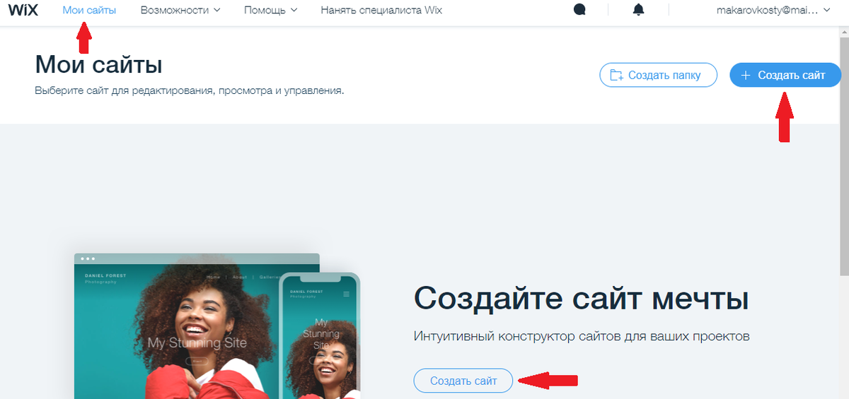 ЭТАП 1. РЕГИСТРАЦИЯ/АВТОРИЗАЦИЯ: Для полноценной работы, чтобы вы, в прямом смысле этого слова, чувствовали себя, как дома, нужно пройти простую регистрацию на сайте: https://www.wix.com/account/sites После быстрой регистрации вы увидите в правом верхнем углу свой логин. Теперь можно приступать непосредственно к созданию своего сайта! Онлайн конструктор сайтов бесплатно в вашем распоряжении. ЭТАП 2. НАЧИНАЕМ РАБОТУ ПО СОЗДАНИЮ САЙТА: Вы увидите в левом в верхним углу «Мои сайты» а дальше все просто и интуитивно понятно нажимаем «Создание сайта»: (Рис.2) ЭТАП 3. ВЫБИРАЕМ ШАБЛОН ДЛЯ САЙТА: Итак, нажав на кнопку, мы будем автоматически перенаправлены на выбор шаблона для сайта. (Рис.3) Да, выбирать есть, из чего, и это радует. Бесплатный онлайн-конструктор сайтов предлагает деление по категориям, и их масса. То есть выбираете то, что подходит под специфику вашей деятельности. Обратите внимание, что имеются как бесплатные шаблоны, так и платные (однако, их стоимость весьма символично)