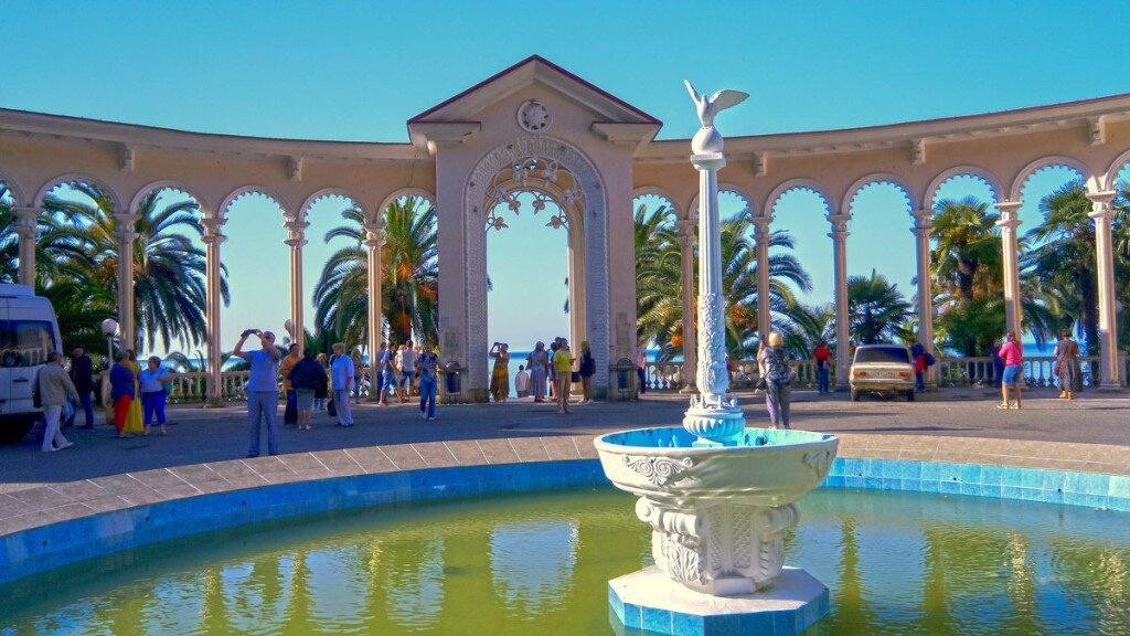 История колоннады Расскажу вам немного истории этой колоннады, которую мы услышали от экскурсовода. Возводилась она в послевоенное время, и на ее строительство ушло примерно 2–3 года. Не хватало необходимых материалов для возведения потому, что страна только начала воскрешать после войны. Лишь к концу 1955 года строительство колоннады было завершено. В 1956 году состоялось ее торжественное и яркое открытие. Самое интересное, что количество колоннад соответствует дате окончания Великой Отечественной войны – 1945, то есть всего насчитывается 45 колон. В годы советского союза она называлась площадью Конституции СССР. Данный памятник является символом победы над фашисткой Германии. Колоннада еще знаменита эпизодом из кинофильма «Зимний вечер в Гаграх». Что такое колоннада Когда мы добрались до Гагр, то, естественно, решили посетить известную колоннаду. Она находится в самом центре старой Гагры. На сегодняшний день эта колоннада — одно из самых интересных и наиболее посещаемых мест не т