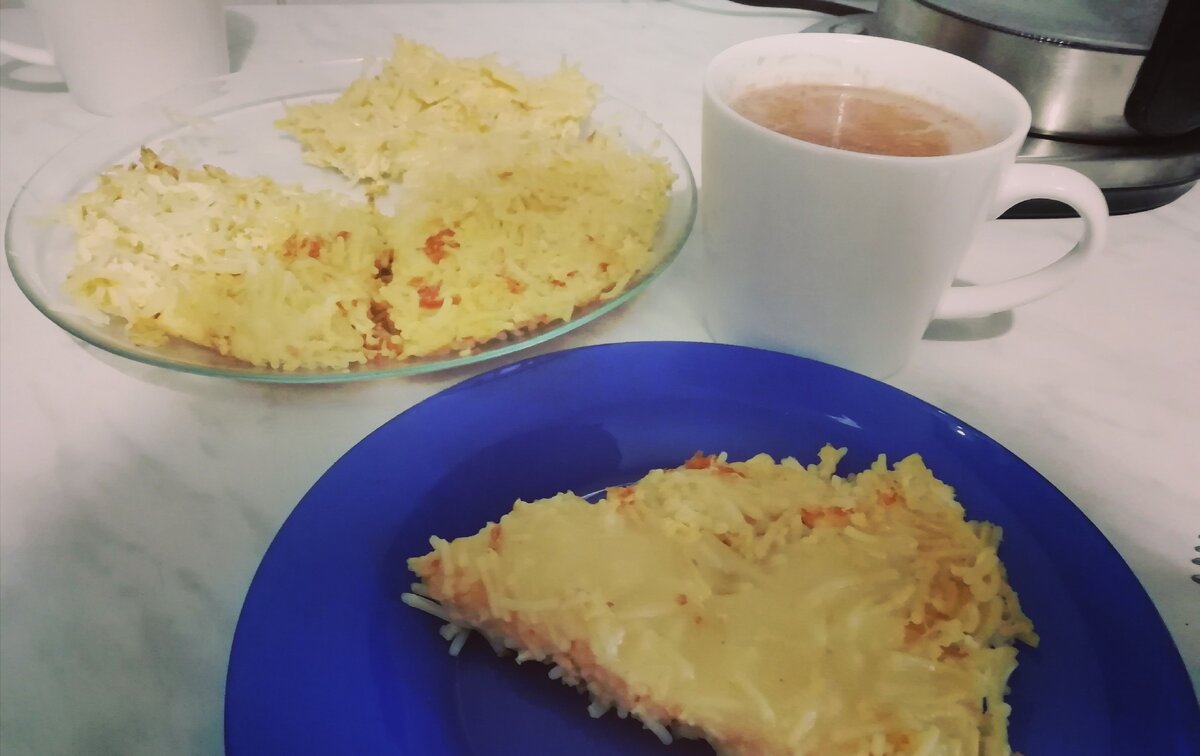 Давно хотела приготовить курузную вермишель из "Вкусвилла" и на помощь мне пришел простой и вкусный рецепт лапшевика, который неплохо сочетается с теплым какао. На 4 порции: Лапша - около 100 гр Яйца - 4 шт. Соль - по вкусу Раст. масло - примерно 2 ст.л. Сыр "Natura" - по вкусу Технология 1. Подготовьте продукты. 2. Сварите вермишель (около 7-10 мин.) добавив в воду соль и растительное масло. 3. Откиньте на дуршлаг и добавьте в вермишель 4 яйца. Слегка взбивая вилкой перемешайте. 4. Сковороду смажьте растительным маслом как форму для запекания по всей поверхности. Выложите лапшевик-вермишелевик на сковородку включив средний огонь. Подождите минуту, потом поставьте на тихий и накройте крышкой. 5. Через 3 минуты подденьте лопаткой дно, чтобы лапшевик не пристал к сковородке. Снова закройте крышкой. 6. За это время нарежьте/потрите сыр. Откройте крышку, добавьте сыр и подденьте лопаткой дно. Закройте на минуту. 7. Готовьте еще одну минуту без крышки, придавливая лопаткой. 8. Выложите