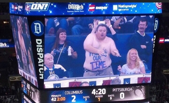трибунах, которое устраивают сами болельщики. Фанаты НХЛ в этом плане идут впереди планеты всей. Люди очень тщательно готовятся к играм своей любимой команды: наряжаются, раскрашиваются, готовят красочные баннеры, желая привлечь внимание игроков и других болельщиков. Кевин Шрёдер — один из самых креативных болельщиков заокеанской лиги, но более известный фанатам «Коламбуса», как упитанный «Танцующий Кевин». Этот парень, в своё время, весил более 160 кг, но относился к этому без всяких комплексов, сумев без лишнего стеснения превратить свой «багаж» в достоинство.