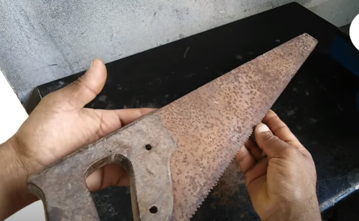 Добрый день дорогие садоводы и огородники. Многие из нас самостоятельно делают такое удобрение как компост. Его составляющие могут быть разными, но всё же основой является зеленая масса. Сегодня мы предлагаем изготовить на базе угловой шлифовальной машинки измельчитель для сорняков, ботвы и прочей зелени, которая используется в приготовлении компоста. Также с помощью этого приспособления можно измельчать траву для приготовления зеленого удобрения. Прежде всего нам понадобится материал, из которого нужно изготовить режущий нож. Металл должен быть прочным и достаточно гибким. Это основная деталь нашего приспособления. Для этой цели как нельзя лучше подойдет старая ножовка по дереву. Наносим разметку и в середине просверливаем отверстие диаметром, равным посадочному диаметру на угловой шлифовальной машинке. Теперь нам необходимо отрезать всё лишнее и предварительно вырезать контуры ножа. После этого окончательно доводим форму ножа на точильном станке. Затем нужно заточить режущую кромку и