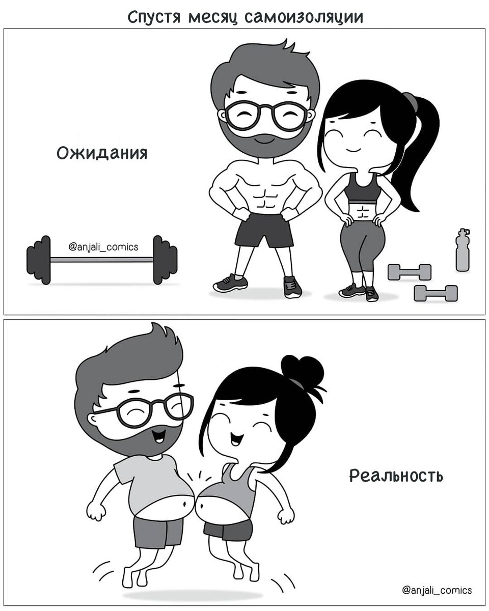 В период самоизоляции мы стали проводить в разы больше времени наедине друг с другом. Согласно статистике увеличивается количество семейных скандалов и случаев насилия на бытовой почве. Чтобы этого не происходило, относитесь друг к другу снисходительнее, ищите компромиссы, радуйте и не уставайте удивлять - как это делают персонажи комиксов художницы из Индии @anjali_comics В отношениях проявляйте оригинальность и всю свою изобретательность: Если от выходных остались приятные воспоминания, они будут заряжать вас всю предстоящую рабочую неделю. Немного милоты: Интересно, каким бы был финал комикса (ниже), если бы парнишка не угадал с ответом?)) Твой парень сделал фотку, на которой ты блистаешь словно модель с глянцевого журнала? Нееет. Не бывает такого))) Ну с кем подобное не случалось? Приснилось, что твоя любимая половинка устраивает свидания и крутит шашни с другой девкой. Вроде бы проснулась, а злость и отвращение к этому "кабелю" еще остались ))) Не забывайте, что все мы не идеальны