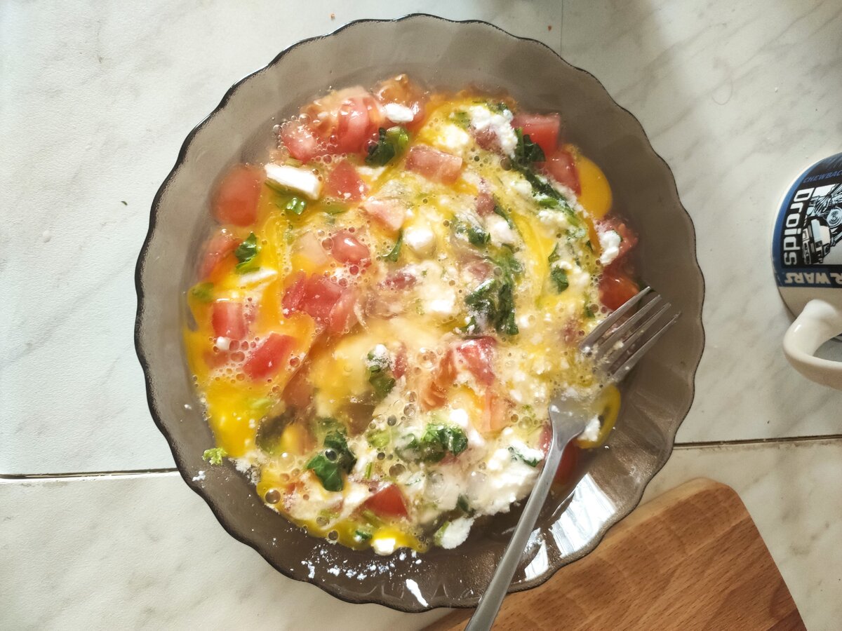 Вкусные и полезные тарталетки из шпината. Необходимо : И так мелко порежем шпинат и кубиками помидоры. Смешаем все ингредиенты и в 2 небольшие тарталетки. В духовку разогретую до 175 градусов ставим на 15 минут. Или микроволновка в режиме запекания на 10 минут. Приятного аппетита!!!!