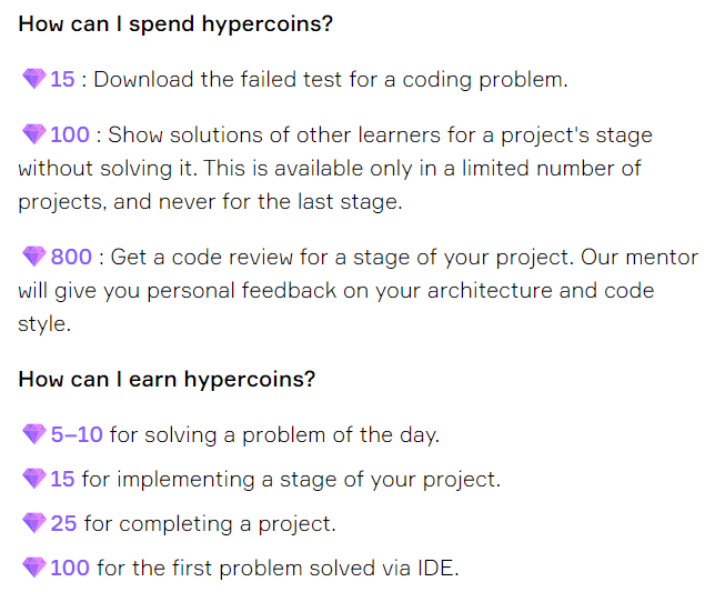 Сразу скажу, что я очень люблю различные сайты для решения задачек и просто с теорией, но по уровням. Пробовала очень многие, а недавно я открыла для себя Hyperskill. Это полностью бесплатный сайт с небольшими лекциями и практикой в виде уровней и начинать можно совсем с нуля. Лекции на английском, но это даже не минус, потому что в современном мире все и так знают английский. Сейчас я прохожу Kotlin. Даже не смотря на то, что я уже работаю, всё равно нашла какие-то новые моменты для себя. Потом хочу пройти алгоритмы и Java. Ещё там есть потрясающая фишка: проект от JetBrains, поэтому все задачи синхронизированы с Intelijji Idea. И задач очень много, поэтому тема точно будет усвоена, если, конечно, вы не будете подсматривать. Ещё там есть алмазики, которые можно зарабатывать и тратить. Мне интересно набрать 800 и посмотреть, что там за CR. Пока что цель такая :) И только что заметила, что там даже есть оценка кода. Можно посмотреть и улучшить.