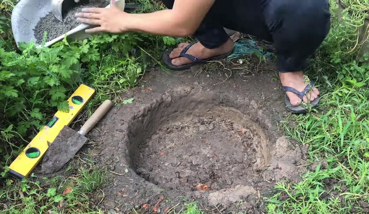 Первый шаг. (подготовка места) 1)Находим подходящее место и расчищаем его от зарослей и всего лишнего. 2)Размечаем окружность с диаметром 60 см. Очертить можно гвоздем с нитью. 3)Выкапываем ямку глубиной 20 см. Притрамбовываем края и дно ямки. 4)На дно насыпаем 1.5-2 см обычного цемента.(фото 1) Что бы нижняя плита была очень прочная. Сверху цемента делаем стяжечку 2-3 см с цементно-песчаного раствора(1:2) и обмазываем края ямки раствором(фото 2) Не забудьте сверху сделать окантовку с того же раствора, как показано на фото. Все эти дела надо максимально пригладить мастерком(кельмой) 5)Отрезаем кусок пластиковой трубы диаметром 10 см и делаем прорез под провод, как показано на фото 1 и выставляем четко по центру и равняем уровнем(фото 2) Второй шаг. Собираем наш фонтанчик. 1) Возьмите шланг и соедините его как показано на фото 1. Что бы получился диаметр 40 - 45 см. 2)Найдите плитку и покрошите её на небольшие кусочки. (фото 2) 3)Вам нужно 4 отрезка прочных металлических прутиков,