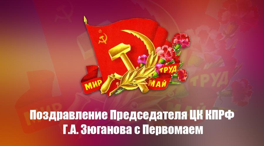 Уважаемые товарищи! В годину исторических испытаний коммунисты не раз показывали пример самоотверженности и верности делу освобождения и защиты трудящихся. Убеждён, что и сегодня нам по плечу любые задачи. Встречая 150-летие В.И. Ленина, мы смотрим в будущее с оптимизмом, как умел это делать сам Ильич. В трудный час он был уверен: «Развитие вперёд - если не иметь в виду возможных, временных, шагов назад - осуществимо лишь к социалистическому обществу, к социалистической революции». КПРФ сегодня нацелена на созидательную работу и настойчиво продвигает свою антикризисную программу. Она основана на опыте ленинско-сталинской модернизации и успехах китайских товарищей. В фокусе нашего внимания - поддержка отечественного производства и защита интересов людей труда. Мы уверенно держим Красное Знамя - символ побед наших дедов и отцов, залог большого общего успеха в будущем. От души поздравляю Вас с Днём международной солидарности трудящихся, дорогие друзья! Мы обязательно победим! Геннадий Зюг