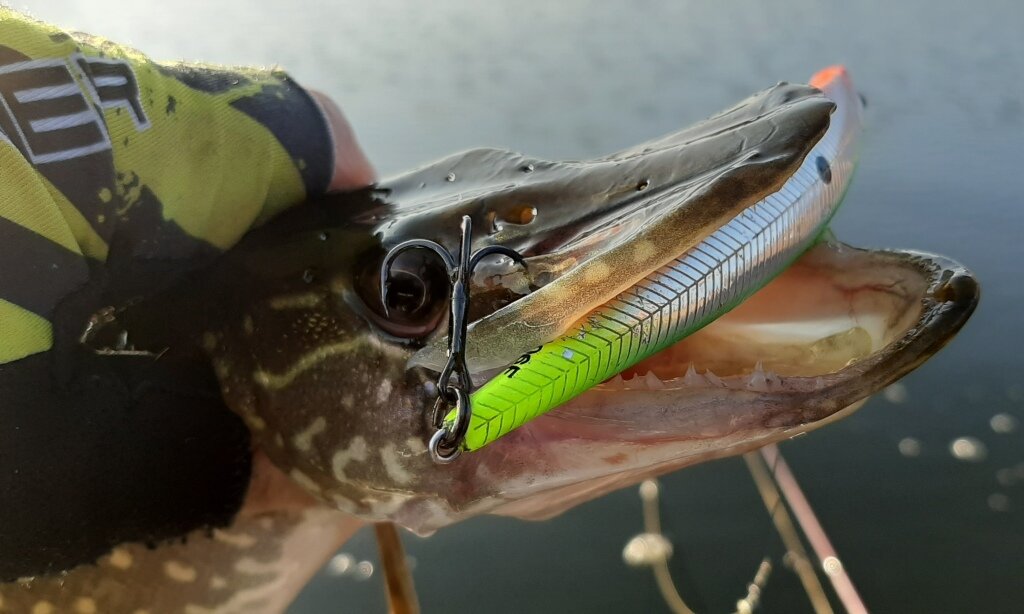 Приманок такого типа в своем арсенале я никогда не имел. По случаю, приобрел этот воблер и отложил его до лета. Но до этого самого лета лежать в коробке гнутому красавцу не пришлось. Выезжая на осенние рыбалки, все же решил опробовать его на небольших речках по мелякам. Немного о воблере Данная модель плавающая, при проводке резко заглубляется от каждого рывка, но не выныривает, как пробка, а всплывает с замедлением, так что успевает повилять боками. Использование поводков из металла, типа струны, придавая вес, заглубляет его головную часть и при рывке задает более широкий размах и заныривание. В названии указана длина тела воблера в 10,6 см, на деле так оно и есть. Вес составляет 10,8 г. Заглубиться он может до полуметра. Мой экземпляр — в цвете 404; сверкающие бока и яркие кислотные цвета хорошо заметны в любую погоду как рыболову, для контроля проводки, так и рыбе. Воблер оснащен тройниками C`ultiva Stinger, они имеют острые, загнутые внутрь жала. Качество исполнения, детали и фурни