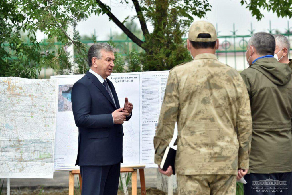 Узбекистан, Ташкент – АН Podrobno.uz. Шавкат Мирзиёев прибыл на вертолете в район прорыва дамбы Сардобинского водохранилища в Сырдарьинской области. Эвакуация населенных пунктов, находящихся рядом с водохранилищем, продолжается, сообщает корреспондент Podrobno.uz. Как мы писали ранее, утечка воды из шестой пикетной стены дамбы произошла ранним утром 1 мая. Затоплена территория махалли Кургантепа Сардобинского района. Шавкат Мирзиёев прибыл в район затопления на вертолете, сообщил телеканал "Узбекистан 24". В Сырдарьинской области также находятся премьер-министр Абдулла Арипов, руководство Министерства по чрезвычайным ситуациям и Национальной гвардии. В Мирзаабадский район вывезены 11 598 жителей махаллей Кургантепа, Дустлик и Юртдош, началась эвакуация людей из махаллей Куйтош, Ота юрт и Бирлик. К работе привлечены около 900 сотрудников спасательных служб и почти 200 единиц техники. По предварительным данным, жертв и пострадавших нет, подтоплены в основном хозяйственные помещения