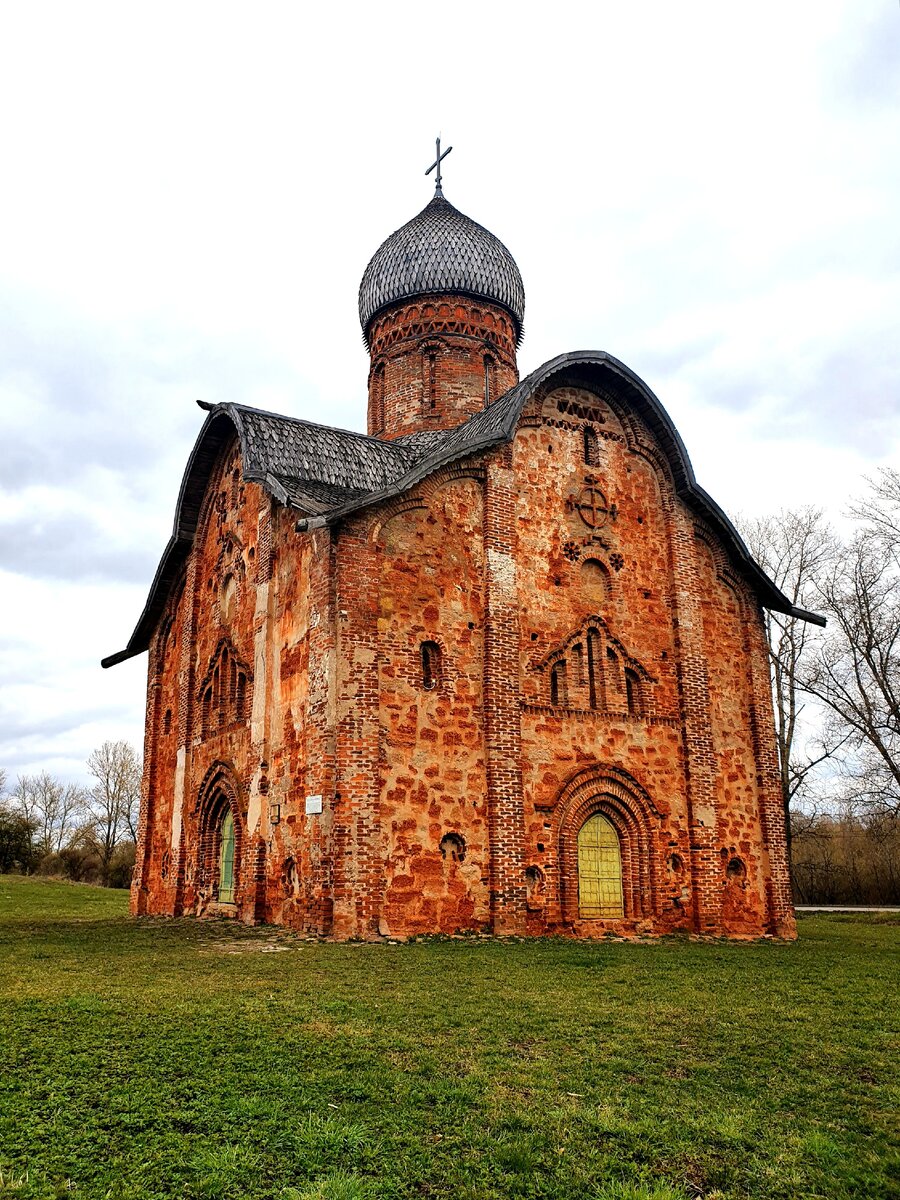 У южной части Зверина монастыря стоит одна из лучших новгородских построек - церковь Петра и Павла в Кожевниках, построенная на средства ремесленников-кожевников в 1406 году. Одноглавый четырёхстолпный новгородский храм выстроен в основном из крупных блоков известняка, а его декоративные элементы, украшающие верхние части фасадов, выполнены из кирпича. Из кирпича сложены также лопатки, арки и глава церкви. Фасады церкви имеют трехлопастное завершение, оформленное многолопастной ползучей аркой. Интересен кирпичный орнамент, украшающий здание: пояски из треугольных впадинок («бегунец»), круглые и пятиугольные нишки, розетки, поребрик, аркатурный фриз и рельефные кресты. На южном фасаде сохранилась пятичленная композиция из трех окон и двух ниш между ними, увенчанная декоративной пятилопастной бровкой. Апсида церкви украшена вертикальными тягами-валиками, стянутыми полуциркульными арочками. Деревянный купол церкви был сделан по средневековой новгородской традиции из тщательно подогнанных