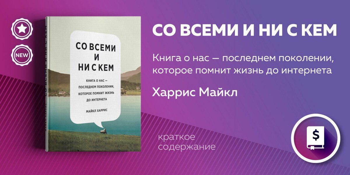 Журналы Harvard Business Review, Psychology Today и Wired – полный список публикаций Майкла Харриса ими не ограничивается. «Со всеми и ни с кем» - это симметричный ответ эпохе социальных сетей, избытку информации и буму человеческого одиночества. Вот основные идеи из книги Харриса.