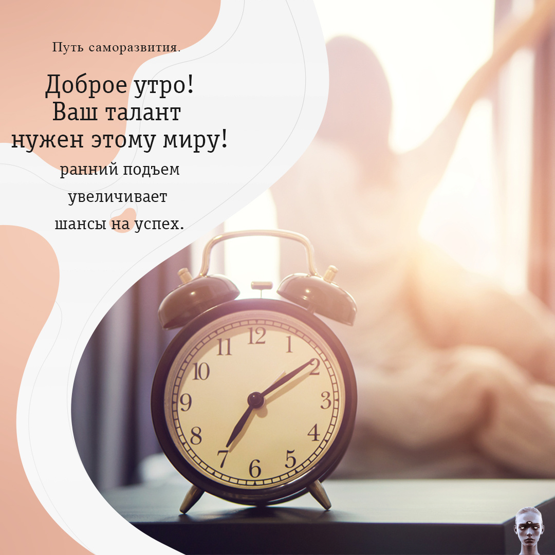 1. Ранний подъем. На тему раннего подъёма написано много статей и даже книг. Некоторые исследователи советуют первый час после подъема посвятить себе. Сделайте зарядку, помедитируйте, распланируйте предстоящий день, почитайте полезную статью. Вдохните аромат горячего кофе и настройтесь на хороший день. Многим людям очень сложно вставать рано, поэтому им помогут следующие советы: - старайтесь раньше ложиться спать; - постепенно переходите на ранний подъем, например, первую неделю на 10 минут раньше (и сделайте зарядку), вторую неделю на 20 минут (добавьте медитацию) и тд;