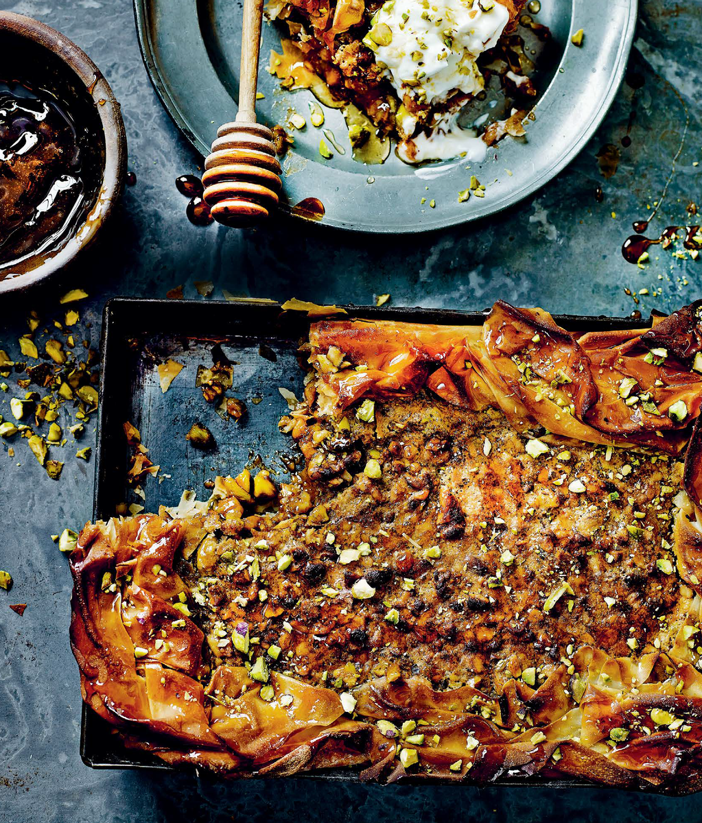 Хотите повторить дома любимое восточное угощение, попробуйте этот пирог. Готовить его легче, чем настоящую пахлаву,но десерт получается не менее сладким и ореховым. Апельсиновую воду можно купить в крупных супермаркетах. Hа 12 порций 125 г сливочного масла, растопить + еще немного для смазывания формы