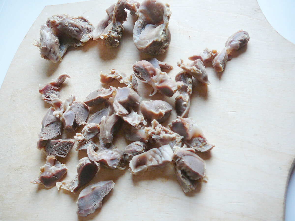 Итак, мы сварили желудочки, достали их из бульона, остудили.