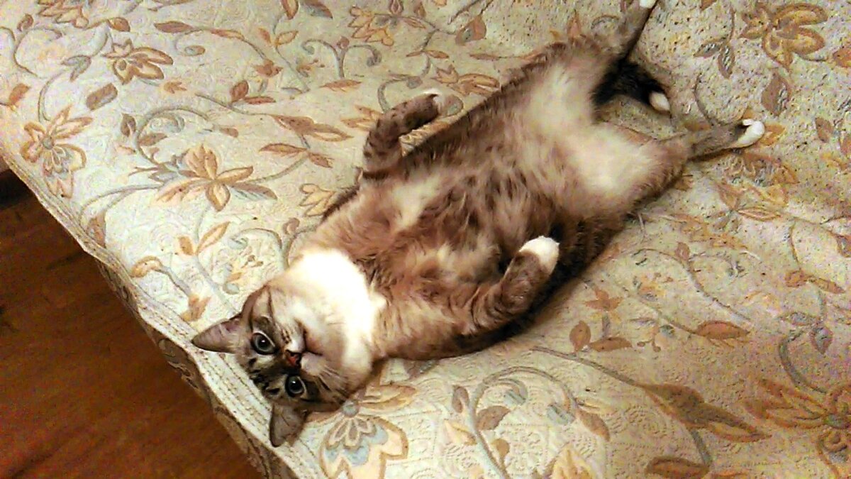 Я на секундочку выскочил покурить и "недогладил" Белку. Почему в кавычках? Потому, что я думал, что догладил холеного кабана, а холеный кабан считал иначе. Он остался в той же позе и начал меня ждать. Мимо мне было не пройти. Жена успела заснять эту мохнатую Ассоль.