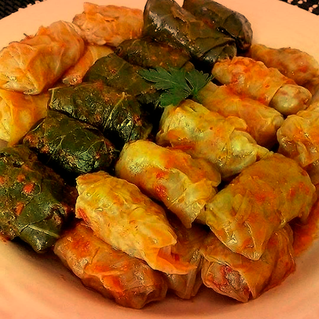 Компоненты: Капусту на голубцы нужно выбирать молоденькую или же с тоненькими листьями. Вырезать у капусты кочан. Довести кастрюлю с водой до кипения, опустить туда головку капусты. Когда верхние листья размягчатся — снять их. Разделить таким образом целый кочан. У листьев выслать плотные участки волокна. Луковицу перекрутить, прибавить к фаршу, поперчить, посолить. Рис помыть и перемешать с фаршем. Для вкуса возможно прибавить немного зелени кинзы. Лук и морковь почистить. Порезать морковь соломкой, а луковицу мелкими кусочками. Лук с морковкой обжарить на растительном масле. Добавить томат. Посолить, прибавить острый перец. Обжарить пару минут. На листья капусты выложить фарш, и свернуть его в конверт. Вплотную поместить голубцы в кастрюлю. Добавить подливу . Сверху положить тарелку. Облить кипяточком так, дабы он покрывал голубцы. При закипании убрать пенку, посолить и варить ~30-35 мин..