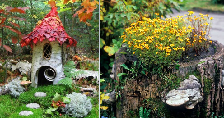 3. Художественный вкус и небольшие плотницкие навыки способны преобразить заурядные пни в очаровательные домики для садовых фей. Малыши будут просто в восторге от этой идеи.