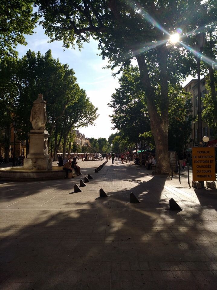 Главный бульвар в Экс-ан-Прованс называется Кур Мирабо(Cours Mirabeau). Длина 440 метров, ширина 42 метра.Он вообще выглядит как большая пребольшая площадь. Статуя короля Рене, правителя Прованса, пристально смотрит в сторону главного и самого большого фонтана Ротонда, построенного в 1860 году в продолжении Cours Mirabeau. Три статуи, обозначающие основную деятельность города венчают фонтан:правосудие,торговлю и сельское хозяйство, искусство и культуру. Кородь Рене- реальный король, по прозвищу Добрый, у которого была резиденция в Экс-ан-Провансе.В те далекие времена Прованс не был частью Франции, а был графством. Именно Рене Добрый превратил город в один из самых блистательных, образованных и богатых городов, каким он и остается по сей день.Его Величество устраивал пышные народные праздники, рыцари и трубадуры съезжались ко двору короля со всех концов графства, чтобы посостязаться в красноречии. Разнообразная поэзия с ее любовными диалогами, пастушескими песнями,красивыми рефрена