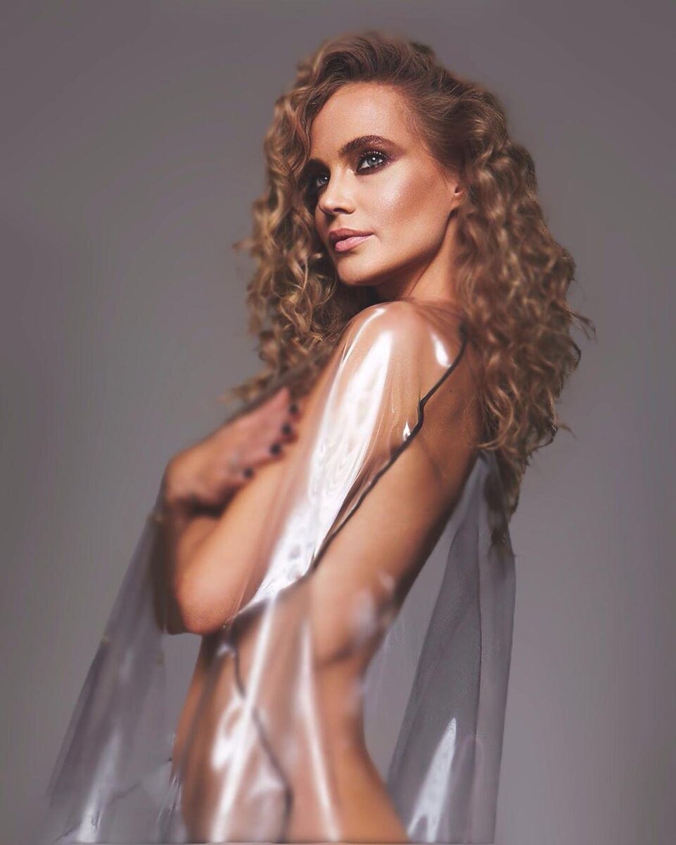 Глюкоза разделась перед камерой, накинув лишь прозрачный дождевик, под которым ничего не спрячешь