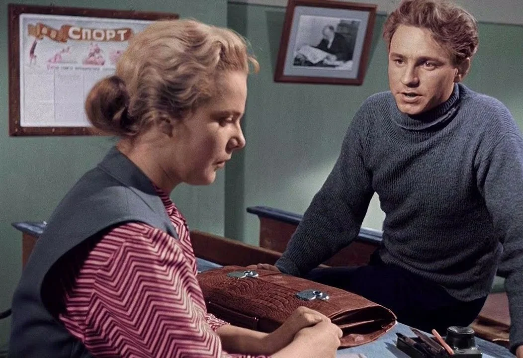 Весна на Заречной улице. СССР, 1956. Режиссеры Феликс Миронер и Марлен Хуциев. Сценарист Феликс Миронер. Актеры: Нина Иванова, Николай Рыбников, Владимир Гуляев, Валентина Пугачёва, Геннадий Юхтин, Римма Шорохова, Николай Ключнев, Марина Гаврилко, Юрий Белов и др. 30,1 миллионов зрителей за первый год демонстрации. Оба режиссера этой оттепельной мелодрамы давно уже вошли в историю советского киноискусства, хотя в итоге по разным причинам им удалось поставить совсем немного фильмов. Режиссер и сценарист Феликс Миронер (1927-1980) поставил всего три фильма, два из которых («Весна на Заречной улице» и «Увольнение на берег») вошли в тысячу самых кассовых кинолент СССР. Режиссер Марлен Хуциев (1925-2019) поставил восемь игровых полнометражных картин, две из которых («Весна на Заречной улице» и «Два Федора») тоже вошли в тысячу самых популярных советских фильмов. Киновед Иван Корниенко (1910-1975) в своей книге хорошо отразил то, как советская кинокритика в целом воспринимала «оттепельность»