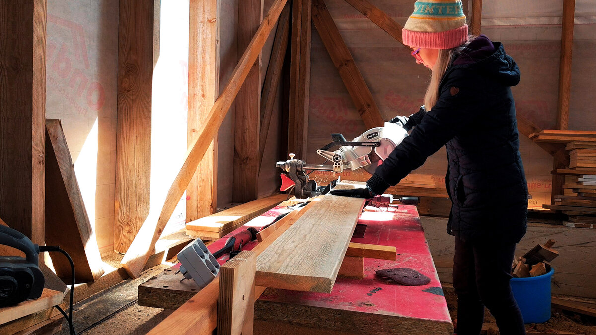 Ну да ладно, далее я торцевала всю пачку с одной стороны. А потом сделала ограничитель и пилила все в размер около 140 см. Все делала на старенькой торцовке из леруа, чтобы было ровненько. Сейчас бы я наверное купила готовые доски и не запаривалась. А может и нет. У меня столько опилок теперь для кур)))