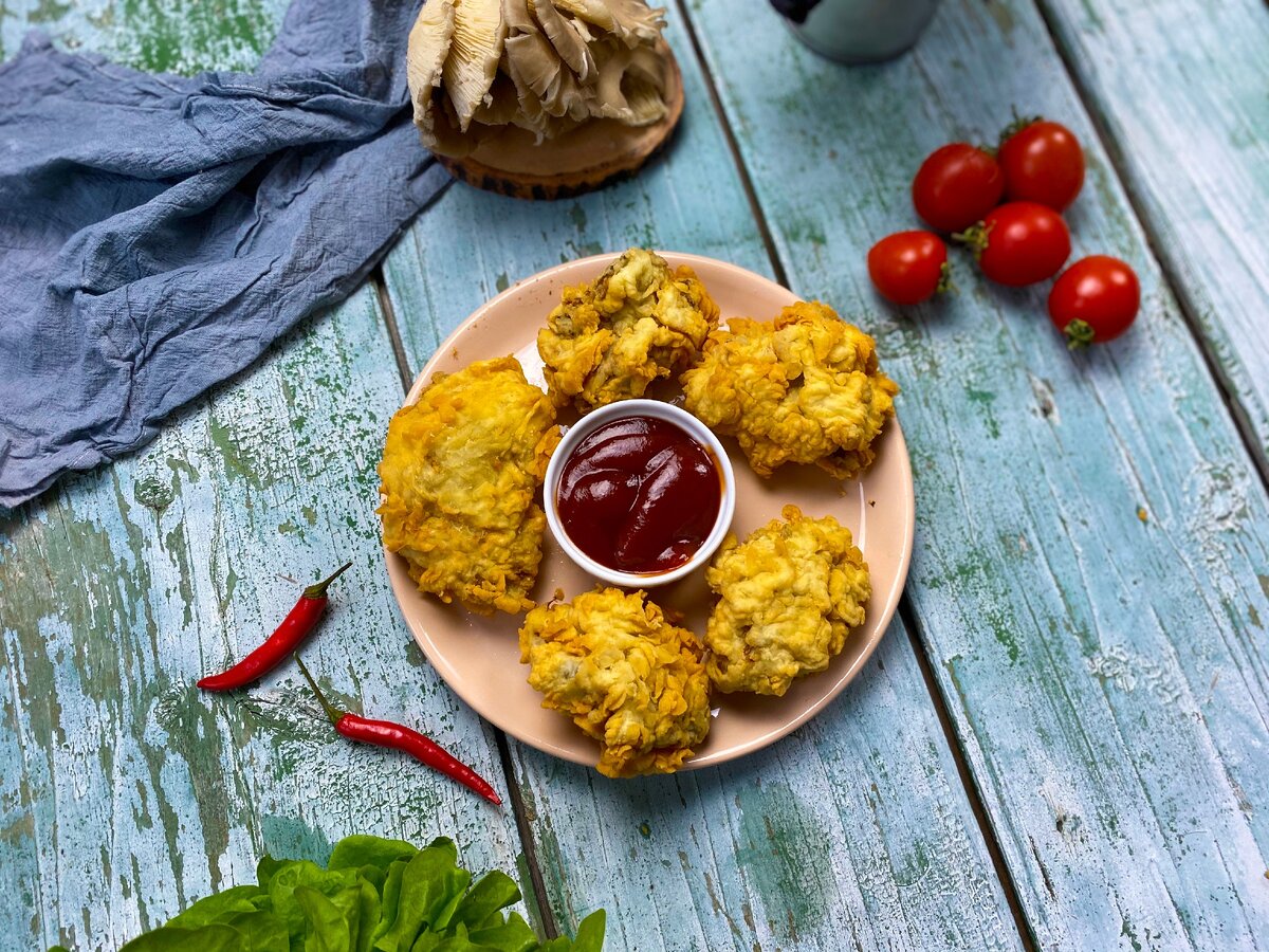 В этот раз мы приготовим сочные наггетсы из грибочков - одну из интересных закусок в веганской вариации! Хрустящая панировка и ароматные специи отлично дополняют вкус самих грибов. Подавайте их с любимым соусом на Ваш выбор😉 Ингредиенты: Кляр: Для панировки понадобятся: Приготовление: 1. Разрываем вешенки на небольшие пучки. Размер регулируйте по желанию. 2. Добавляем к вешенкам специи и соевый соус. 3. Хорошенько всё перемешиваем. Грибы должны тщательно пропитаться специями. И оставляем грибы на 15 минут настояться. 4. Пока вешенки пропитываются вкусами, замесим кляр. К темпура муке добавляем воду и перемешиваем до однородности. 5. Теперь, когда вешенки пропитались, а кляр готов, делаем наггетсы. Их можно сделать двумя путями: двойная панировка и в панировочных сухарях. В первом случае панировку делаем так: кляр -> мука -> кляр -> мука. Во втором случае так: кляр -> мука -> кляр -> панировочные сухари. Можно также пропустить шаги с двойной панировкой, то есть опустить