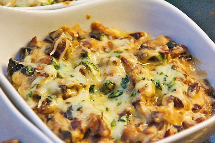 ИНГРЕДИЕНТЫ ПРИГОТОВЛЕНИЕ 1. Лук, грибы, филе порезать кубиком. 2. На сильном огне обжарить филе (до золотистой корочки), посолить, поперчить по вкусу. 3. Отдельно обжарить грибы и лук, постоянно помешивать. 4. К луку с грибами добавить филе и сметану, жарить 2 минуты. 5. Выложить массу на противень, посыпать сыром. 6. Поставить в духовку, разогретую до 200 градусов и запекать 10 минут. Всего 1 час готовки и вкуснейший жульен готов. Приятного аппетита!