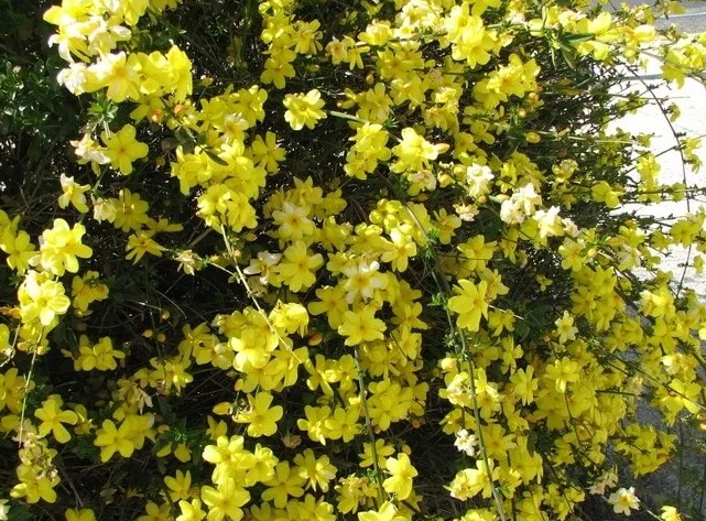 На языке цветов желтый жасмин означает доброту и элегантность. Маленькие и незаметные, цветы этого кустарника выделяются ярким цветом и необычным сезоном цветения. Желтый жасмин был обнаружен в Китае и завезен в Европу в середине 1800-х годов шотландским ботаником. С тех пор желтый жасмин получил популярность и распространение благодаря его устойчивости к холодному климату и неприхотливости, что позволяет ему расти без особого ухода. Универсальная природа позволяет использовать его для окаймления цветочных клумб, в качестве грунтового покрытия или для покрытия стен - в этом случае растение необходимо поддерживать. Маленькие блестящие листья появляются весной, после цветения, собранные в пучки по три листочка.