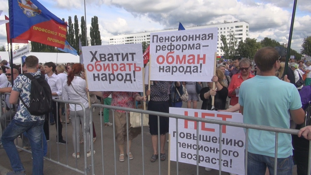 В середине июня 2018 года российское правительство одобрило, согласно Федерального закона N 350-ФЗ от 03.10.2018 г.постепенное повышение пенсионного возраста для женщин до 63 лет и для мужчин до 65 лет, мотивируя это тем что в России всё больше пенсионеров, всё меньше трудящихся, уже сейчас половина денег на пенсии берется из федерального бюджета, пенсионного фонда не хватает, а тратить на пенсии нужно больше, чем Россия зарабатывает на нефти и газе. С 2019 года началось постепенное повышение обще установленного возраста, дающего право на назначение страховой пенсии по старости и пенсии по государственному обеспечению. Повышение пенсионного возраста резко негативно было воспринято российским обществом. Пенсионная система России не перенесла прогнозируемых результатов и трещит по швам. Пенсионный фонд России по итогам года может недосчитаться до трети страховых отчислений — или 1,6 трлн. Рублей, подсчитали эксперты Института социальной политики Высшей школы экономики. Это будет следств