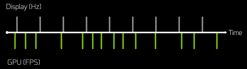 На анимации ниже серые метки обозначают кадры, воспроизводимые монитором, а зеленые – кадры, которые формирует GPU.