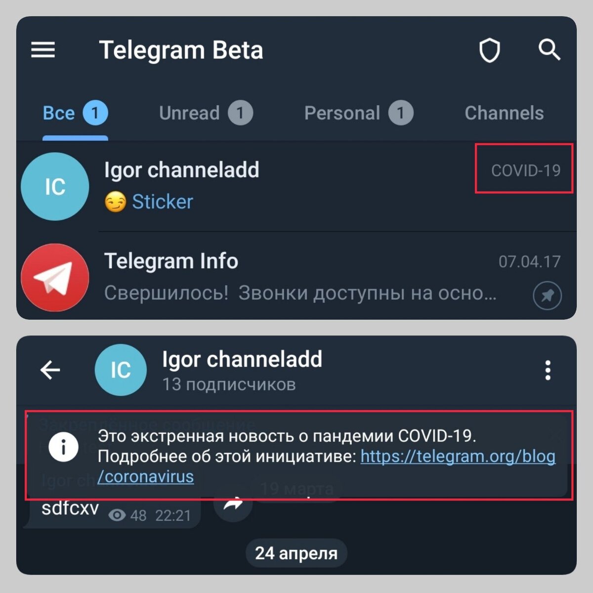 В обновлении Telegram до версии 6.1.1 (Telegram Desktop 2.1.1) появилась поддержка нового типа закреплённого канала. Он призван доносить важную информацию о пандемии до пользователей. На данный момент функция работает только на тестовом сервере. Редакция Telegram Info предполагает, что после окончания пандемии функция может быть использована для рекламы каналов и ботов. UPD: Коллеги с канала «Код Дурова» сообщают, что по информации из источников в руководстве планов на рекламу в мессенджере нет. «Telegram версии 6.1.1 содержит более эффективный способ информирования пользователей о ситуации вокруг пандемии. Использовать «закреплённые каналы» для других целей планов нет.» https://tme.rip/tginfo/2584 #tginfo #тгинфо #telegram #telegramm #телеграм