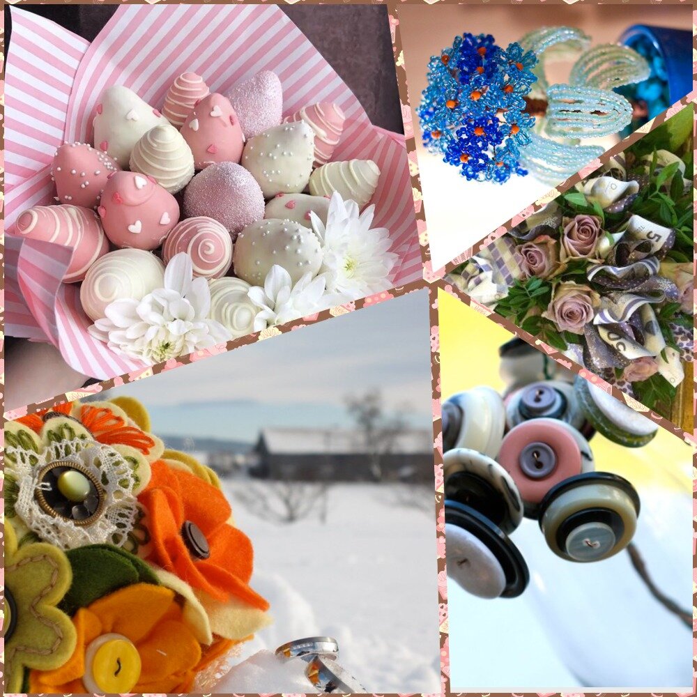 Получать красивые букеты из цветов всегда приятно, смотреть на них можно бесконечно, но получить необычный, оригинальный букет не из цветов в подарок – это совершенно незабываемые ощущения. Такой подарок вы запомните надолго. Давайте рассмотрим, какие оригинальные букеты можно создать своими руками и подарить их на праздник или торжество. Пытался рассмотреть насколько вообще развита товарная нища в этой категории как необычные цветы. Если вы хотите подарить и букет цветов, и деньги, но считаете, что это банально – то можно эти вещи совместить и преподнести в подарок букет из денег! Денежный букет может состоять из любого рода купюр и достоинства. Ценность букета можно варьировать по количеству и номиналу бумажных денежных знаков. Техника составления такого неординарного букета довольна проста, и при этом, можно не беспокоиться за состояние самих купюр. Такой подарок любой человек оценит по достоинству. Моё случайное наблюдение про поисковый запрос в сети #букеты из конфет Оригина