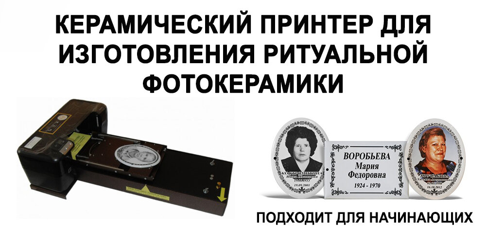 Струйная технология – идеальный вариант для ритуальной фотокерамики, время и затраты на изготовление 1 единицы минимальны, ни одна из существующих технологий не перешагнёт данный метод переноса отпечатка на заготовку.