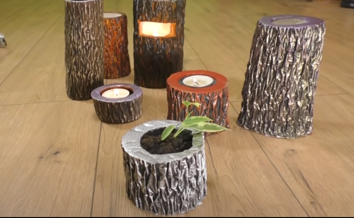 Кашпо, пепельница, подсвечник или просто подарочный сувенир - вы решите сами. Сделать это очень просто, сейчас я вам об этом расскажу. Практически из ничего можно сделать очень интересные вещи. И так начнем! Будем мы все это делать из теплоизоляции, по своей структуре напоминает кору дерева. Чтобы из нее получилась форма, нам достаточно ее свернуть и вуаля форма готова. Но чтобы раствор не вытек из формы через низ, мы вырезаем дно для формы из пенопласта. Далее дно вокруг обклеиваем двухсторонним скотчем, чтобы оно приклеилось к форме. Следующим шагом будет обмотать форму малярным скотчем, для того чтоб не вытек раствор. Нам понадобится : Теплоизоляция; Пенопласт; Скотч двухсторонний; Скотч малярный; Гипс; Позже делаем раствор из гипса, и заливаем его в форму. На 1 килограмм гипса 600 грамм воды. Также можно кашпо сделать и для улицы, только вместо гипсового раствора нам понадобится цементный. Через 24 часа можно посмотреть что получилось. Достаем из формы и видим прекрасные цвет