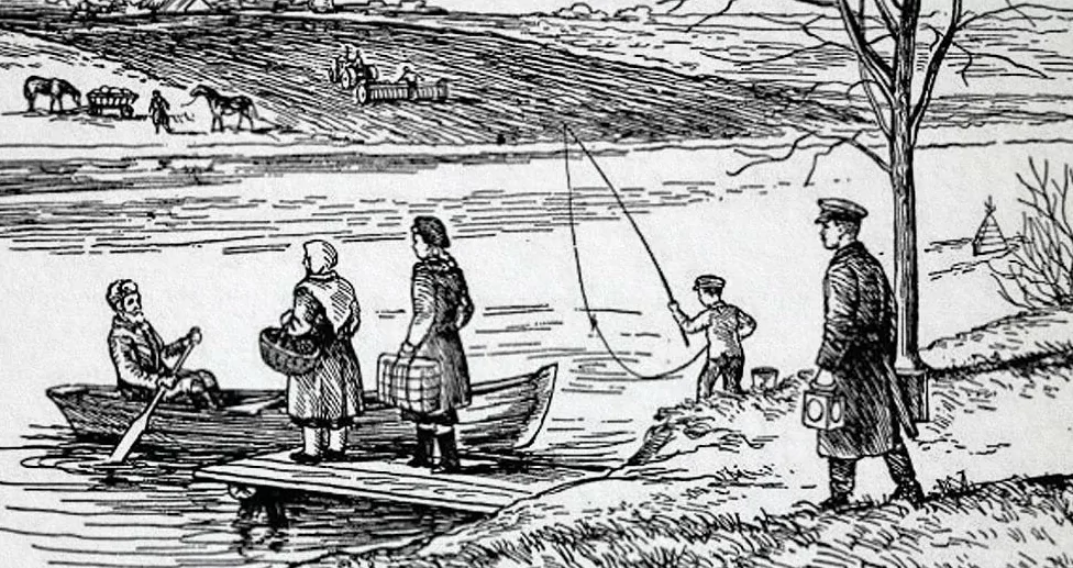 Вам нужно ответить на 3 вопроса: 1.Ходят ли по этой реке судна? 2.Возле лодки маленькая или большая глубина? 3.Какое время года изображено на рисунке? Не спешите с ответами, внимательно рассмотрите картинку. Ну а если ваш ответ уже готов, листайте ниже. Вы готовы увидеть правильные ответы? 1.Если приглядеться, на реке можно увидеть бакену, это говорит о том, что по реке ходят судна. 2.Мальчик держит в руке удочку, а ее поплавок находится на большом расстояние от конца лески. Из этого следует, что река достаточно глубокая. 3.На картинке изображена осень, так как снега еще нет, но люди уже ходят в теплой одежде.