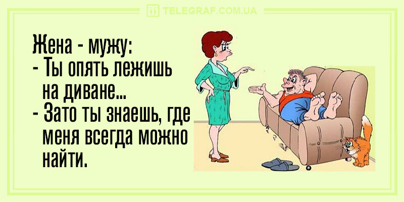 Две молодые мамы разговаривают о своих детях. — Нет, мой Игорёк меня по ночам не беспокоит. Как только он начинает плакать, я ему сразу пою колыбельную… — Я раньше тоже так делала, — вздыхает другая. — Но соседи сказали: «Маша, пусть лучше он орёт». *** — Доктор, я работаю как лошадь, ем как свинья, устаю как собака, что мне делать? — Даже не знаю… А вы к ветеринару обращались? *** Встречаются два друга. Первый несет в одной руке дорогие бриллиантовые серьги, а в другой руке ружье. Второй спрашивает: – Ты куда это? – Теще в подарок серьги несу. – А зачем ружье? – Дырки в ушах делать. *** Под окнами роддома: – Маша! Кто? – Чехи, 2:1, я чуть не родила! *** Муж – жене: – Я же просил погладить мой пиджак! – Но я погладила! – Неправда! Пять тысяч рублей как лежали во внутреннем кармане, так и лежат! *** Если опаздываешь на работу ― не спеши. Придумай причину. *** ― А нам в этом месяце премия будет? ― Начальник сказал, что выдаст овощами! ― Как это, что он сказал? ― Хрен вам! *** Психиатр с
