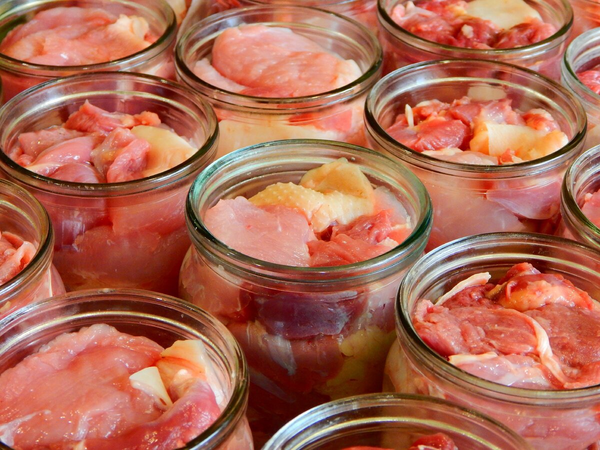 Добрый день, с вами Наталья! Вот так ждёшь весну, ждёшь, а потом столько дел наваливается, что не знаешь когда и как отдохнуть...Сегодня у нас на повестке дня - тушёнка с индейки. Сырьё для приготовления этого вкусного блюда у нас свое, поэтому готовим в свободное время, независимо от поставок мяса. Тушёнку из кролика мы делаем давно, технология уже оработана и понятна, а вот тушёнку из мякоти индейки, без кости, решили делать первый раз, к тому же, подоспели прошлогодние индюки(лишние, те кто не ушел на племя). Автоклав у нас белорусский, самый обычный и простой в использовании, мы брали такой агрегат в который входит сразу 21 пол-литровая банка тушенки . Для начала я мою все баночки, стерилизовать их не обязательно, это сделает за нас автоклав, уже в процессе приготовления. Пока баночки стекают, готовим наше мясо, режем его на кусочки 5 на 5 см, мельче нет смысла, также приготовим соль, перец горошком и лавровый лист, вот и все ингредиенты, которые нам понадо