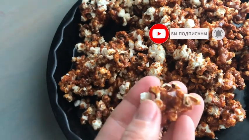Попкорн с соленой карамелью дома. Так вкусно что не оторваться Дела первый раз карамельный попкорн, и ошибся на простом моменте, поэтому вы и я в следующий раз не допустите эту ошибку. Как же приготовить попкорн с соленой карамелью? Разогреваем 2-3 ст. ложки растительно масла на сковороде, высыпаем зерна кукурузы 1/2 стакана Накрываем крышку, убавляем огонь и ждем несколько минут. Начнется шоу. Зерна будут раскрываться и биться об крышку. Выключаем как взрывы станут редкие, нельзя ждать до конца, потому как попкорн который раскрылся может подгорать пока мы ждем раскрытия других зерен. Как все готово пересыпаем в большую емкость где удобно мешать, и тут я сделал ошибку высыпав весь попкорн вместе с не раскрывшимися зернами. И при смешивании с карамелью они попадались на зубы, а они очень жесткие) . Высыпаем без зерен! Делаем соленую карамель. Берем стакан сахара, и высыпаем в сухой сотейник с толстым дном. И ставим на средний огонь, и ждем пока по краям начнет сахар карамелизирова