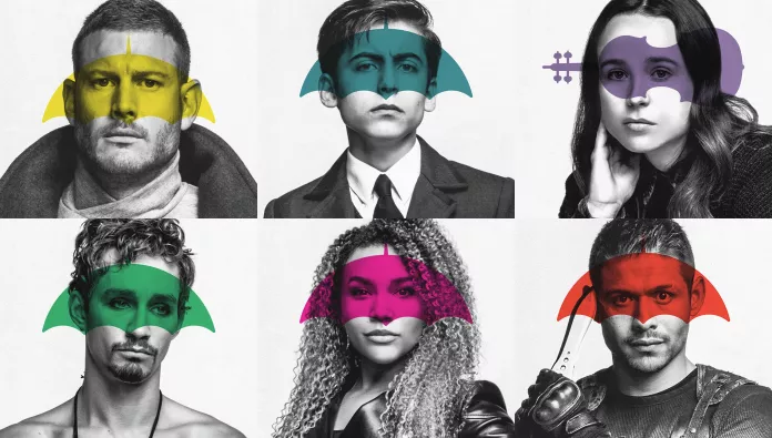 Номер 1 или Лютер Одарен физической силой и выносливостью. Он является лидером команды и единственный из всех остался с отцом и выполнял для него опасные миссии. В ходе одной из которых получил серьёзную травму, что привело к непоправимым последствиям. Номер 2 или Диего Обладает способностью контролировать траекторию полета любого предмета, который он бросил, обычно для этого использует ножи. Возомнил из себя супергероя и спасает людей, попавших в беду, но с проблемами личного характера справится не в состоянии. Номер 3 или Элисон Наделена способностью контролировать разум людей. Стоит ей произнести «ходит слух, что…» и все сказанное тут же выполняют. Этот уникальный дар помог ей реализоваться в карьере, но в личной жизни привел к полному фиаско. Номер 4 или Клаус Умеет общаться с мертвыми. Этот дар чуть ли не сводит героя с ума, и он пристрастился к алкоголю и наркотикам. Номер 5 Умеет перемещаться в пространстве и времени. В возрасте 13 лет, когда осваивал прыжки во времени