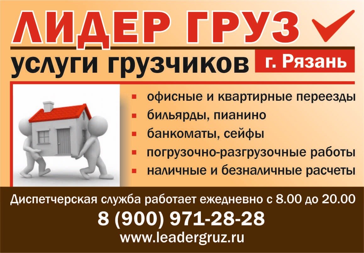 Компания «ЛИДЕР ГРУЗ» — это только качественные услуги грузчиков в Рязани. Мы всегда готовы к сотрудничеству и диалогу, для того чтобы в полной мере соответствовать требованиям заказчика. Заказать услуги грузчиков недорого можно по телефону: 8 (900) 971-28-28. Как и во всякой профессии, у грузчиков есть специализации. Услуги грузчиков для перевозки различных вещей могут кардинально различаться по необходимой квалификации и способностям. Далеко не каждый грузчик, который отлично проявляет себя в подъеме строительных материалов, так же хорошо покажет себя во время квартирного или офисного переезда. Перевозка стекла требует совершенно иных навыков, чем перевозка пианино. Вполне понятно, что всеми этими навыками обладать один человек физически не может. Поэтому при подборе бригады на каждый конкретный заказ, мы стараемся учесть все эти особенности для того, чтобы получить максимальный результат за минимальное количество времени. Услуги грузчиков в Рязани: Квартирный переезд Офисный перее