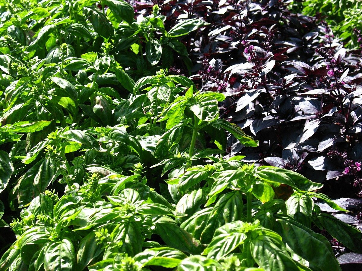 Вырастить базилик на даче у меня долго не получалось. Не всходит он на грядке. И даже посеянный на рассаду еще в марте, в горшочках, не взошел. То ли на подоконнике ему холодно, то ли еще чего не хватает. Зато прекрасно всходит в теплице, среди огурцов.