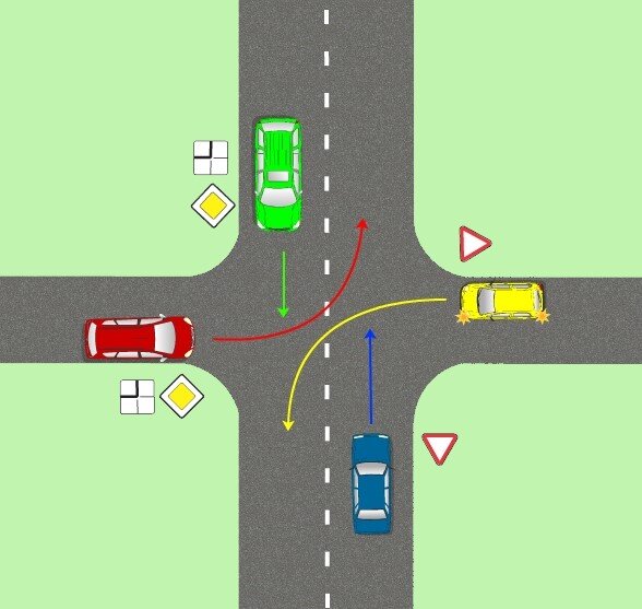 При проезде нерегулируемых перекрестков стоит уделять особое внимание дорожным знакам. Смотрим схему: А вот и другая ситуация, хотя, казалось бы, перекресток аналогичный: Делитесь своими вариантами ответов в комментариях и подписывайтесь на наш канал. Удачи на дорогах!