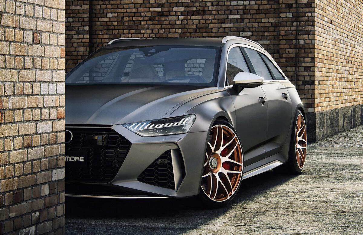 Немецкое тюнинг-ателье Wheelsandmore увеличило отдачу мотора универсала Audi RS6 Avant до 1010 лошадиных сил... Немецкое тюнинг-ателье Wheelsandmore представило свой новый проект: существенно модернизированный универсал Audi RS6 Avant. Всего доступно несколько стадий доработок, на последней из которых мощность двигателя автомобиля превышает отдачу мотора оригинального Bugatti Veyron 16.4. Программа тюнинга начинается с обычного перепрограммирования электронного блока управления двигателем. В таком случае отдача четырехлитрового мотора V8 с двумя турбинами вырастает с 600 л.с. и 800 Нм крутящего момента до 710 сил и 920 ньютон-метров. Доработки обойдутся заказчику в 2100 евро. Читать по теме: Тюнеры разработали 500-сильный дизельный Volkswagen Touareg >>> В последней, пятой стадии тюнинга, универсал получит существенно модернизированный силовой агрегат с увеличенными турбинами, новым блоком управления наддувом, а также другую выпускную систему без фильтров и глушителей. В таком случае
