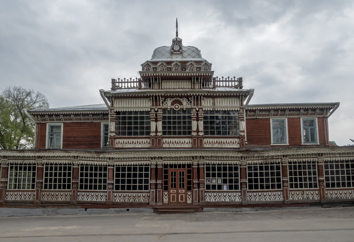 Моё главное откровение в столице Рязанской области — вот этот дом. Офигенный. Я от него отойти не могла. Мы даже потом специально ещё раз туда вернулись. При этом информации в интернете минимум. Написано только, что это летняя резиденция Дворянского собрания, в которой в советские годы размещалось Общество трезвости. Пришлось использовать опцию «помощь знатоков» Оказалось, что тут действительно в тёплое время года тусили рязанские дворяне. И именно они для себя в конце 19 века здание и возвели — двухэтажное, с крытой верандой и богатой резьбой в народном стиле. Только, увы, оно сгорело. Рязанцы долго не горевали, и организовали новую резиденцию — на старом фундаменте и в том же стиле. То, что мы видим сейчас, это как раз второе здание 1905 года постройки. Архитектор — местный талант Иван Степанович Цеханский. Насчёт трезвенников-язвенников, как выяснилось, всё враки Не было их в этих стенах. Видимо, байка пошла благодаря тому, что располагается дом в Нижнем городском парке, кот