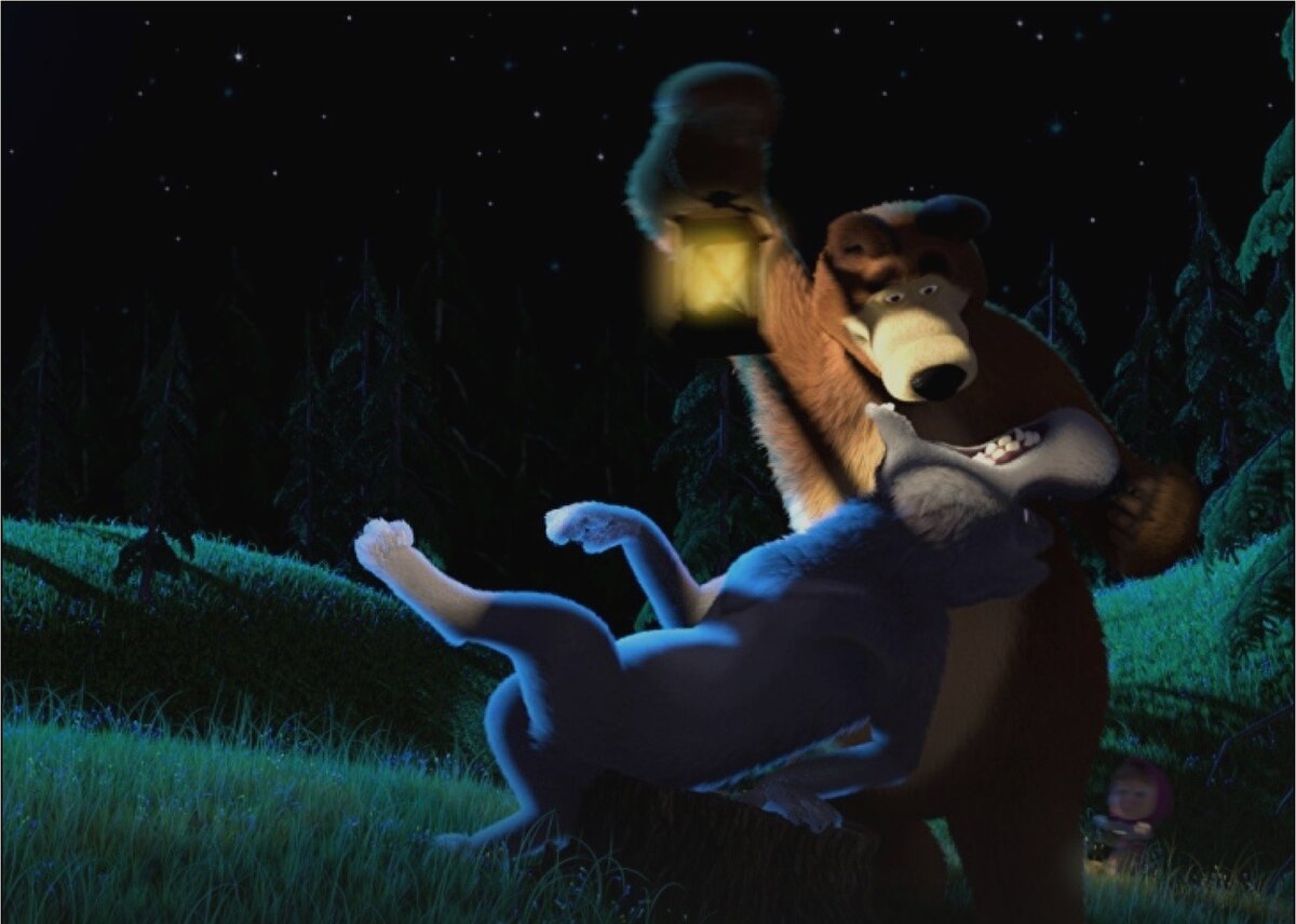 - Братцы, спасайтесь! На полянке возле леса браконьеры с ружьями. И собаками! Медведь на разборки пошёл. Прячьтесь, а то прилетит. Все по норам, все по норам! Иу-иу-иу-иу!!!