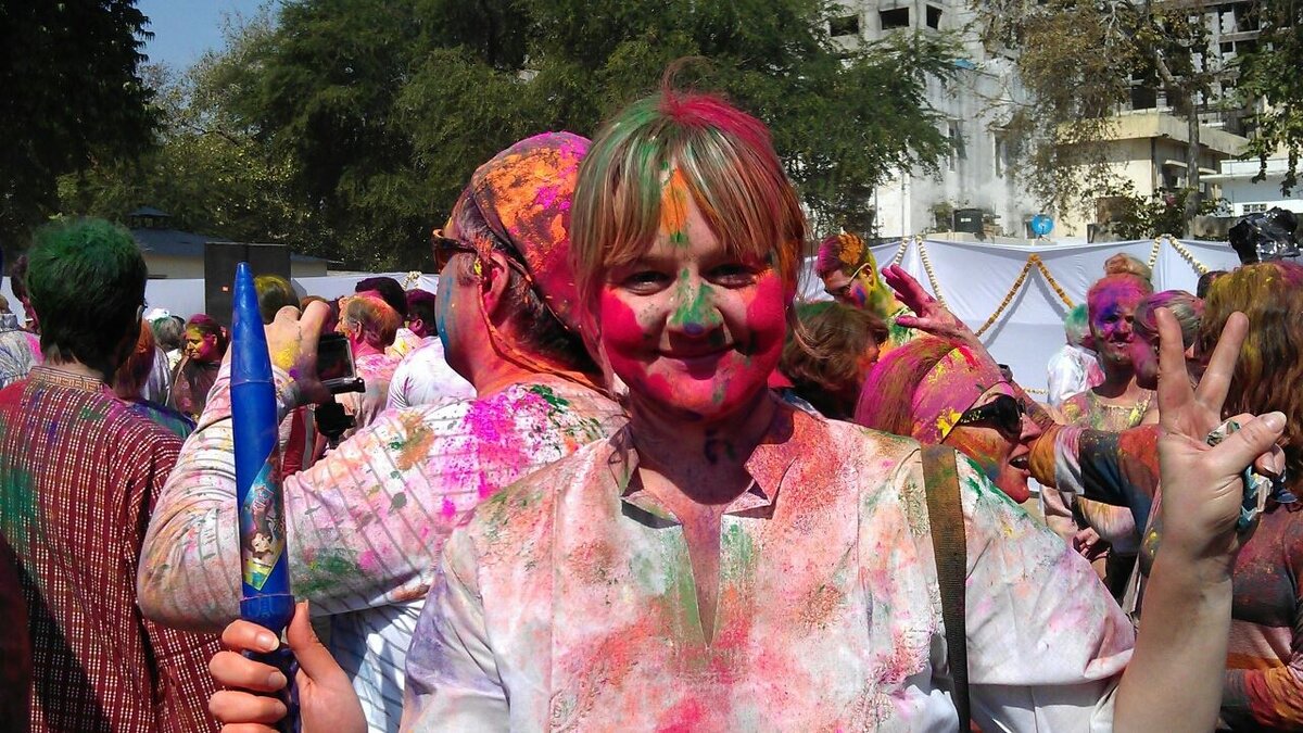 В марте 2015 года впервые в жизни попала на знаменитый индийский праздник Холи. Он застал меня в Джайпуре. На этом фото я нахожусь на центральной площади, куда пришли (так как по всему городу были заранее развешаны объявления :) ) иностранные туристы Джайпура. Индийцев почти не было. А после обеда нашу группу пригласили в гости в индийскую семью и вот там уже было ощущение настоящего праздника... Воспоминания на всю жизнь.