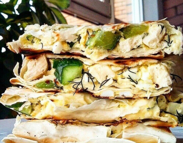 🔸на 100грамм - 147.85 ккал🔸Б/Ж/У - 10.28/6.36/11.81🔸 Ингредиенты: Лаваш тонкий - 200 гр. Курица вареная - 100 гр. Яйца вареные - 4 шт.(маленькие) Сыр -100 гр. Огурец - 100 гр. Йогурт натуральный - 200-300 гр (сметана - по вкусу, вместо йогурта) Укроп Соль, перец молотый Приготовление: 1. Безжалостно крошим ножом яйца, вареную курочку, сыр, огурец и зелень в миску. 2. Заливаем все это дело йогуртом, хорошо солим и перчим. 3. Легким движением руки выкладываем начинку на лаваш и аккуратно заворачиваем. 4. Грозно усмехаясь, подсушиваем наши конвертики на сухой антипригарной сковороде до хрустящей корочки (пару минут с каждой стороны). 5. Сытная, вкусная и полезная шаурма готова! Приятного аппетита!🍴