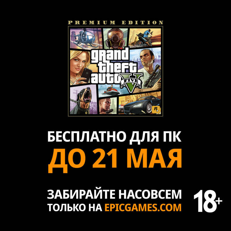 Слухи оказались правдой : 14 мая в Epic Games Store как и планировалась началась раздача Grand Theft Auto 5 Premium Edition, это особое издания игры, которое включает в себя разнообразные бонусы для GTA Online. Раздача продлиться вплоть до 21 мая,то есть одну неделю. Забрать игру бесплатно и навсегда можно на специальной странице. Напомню, что с недавних пор для участия в раздачах требуется подключить двухфакторную аутентификацию. GTA 5: Premium Edition включает в себя следующее: Сразу стоит предупредить, что сейчас вы можете испытывать некоторые проблемы с клиентом EGS, потому что за бесплатной «пятеркой» ринулось безумное количество людей, чего и следовало ожидать. Если у вас не получается забрать игру сейчас — попробуйте позже. Благо, у вас есть на это целая неделя. Навсегда добавить GTA V в библиотеку можно до 21 мая. Следующая игра, которую можно будет бесплатно забрать в EGS, также остается загадкой.