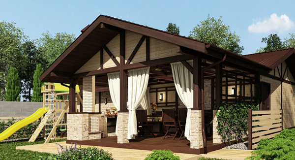 Открытые беседки для дачи отличаются воздушностью и ажурностью. Их конструкция включает только каркас и крышу. Обычно подобные строения имеют небольшой вес. Каркас изготавливают из деревянных столбов или металлического профиля. В открытую деревянную беседку можно поместить барбекю или мангал. Такое дополнение позволит проводить время еще более приятно. Сегодня большой популярностью пользуются и закрытые конструкции. Их строят обычно из дерева или кирпича. Такие домики отличаются основательностью и долговечностью. В них можно проводить время в любую погоду. Внутрь закрытой беседки обычно помещают мебель, иногда проводят коммуникации и устанавливают печь.